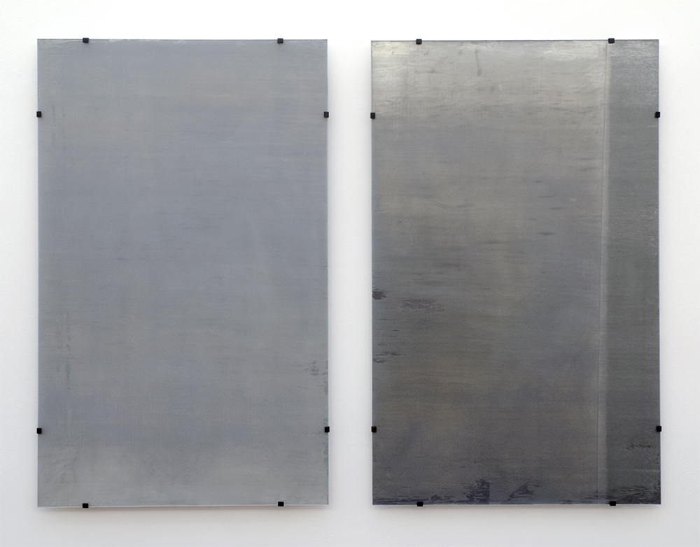 lead, glass, steel on panel /